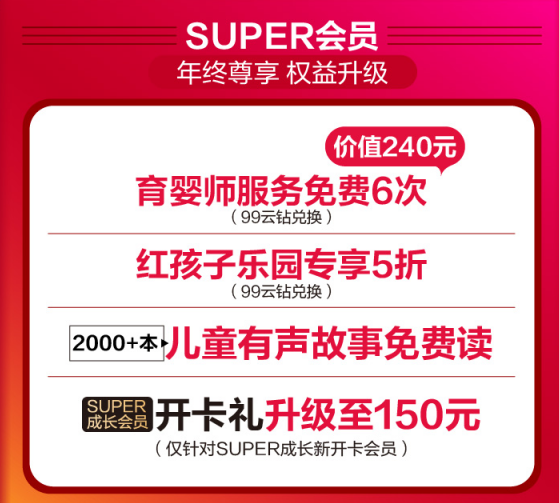 即日起,上蘇寧易購參與蘇寧紅孩子“年終狂歡搶購盛典”活動,10點、15點、20點整點搶2019元母嬰神券,進入蘇寧拼購小程序最高可領(lǐng)取8元膨脹紅包。全國近200家蘇寧紅孩子門店還推出滿30元減30元神券限量砍,99云鉆免費兌換育嬰師服務(wù)、紅孩子樂園5折優(yōu)惠等。