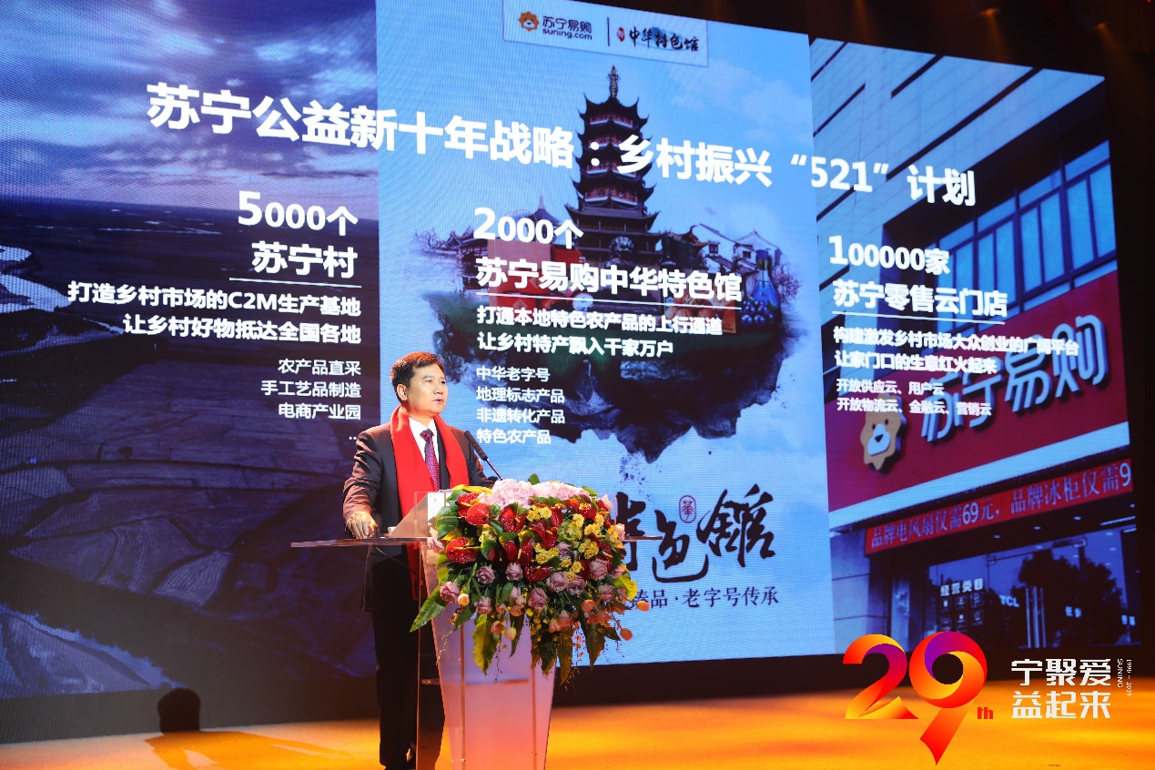 (圖:蘇寧控股集團(tuán)董事長張近東發(fā)布鄉(xiāng)村振興“521計(jì)劃”)