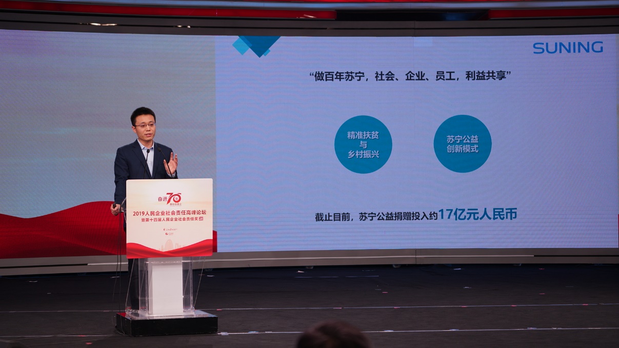 深圳新聞網(wǎng)2019年12月31日訊 12月27日,2019人民企業(yè)社會(huì)責(zé)任高峰論壇暨第十四屆人民企業(yè)社會(huì)責(zé)任獎(jiǎng)?lì)C獎(jiǎng)典禮在人民網(wǎng)舉行,各大企業(yè)代表分享經(jīng)驗(yàn)。蘇寧榮獲第14屆人民企業(yè)社會(huì)責(zé)任獎(jiǎng)“年度扶貧獎(jiǎng)”獎(jiǎng)項(xiàng),表彰蘇寧在扶貧領(lǐng)域深入、專業(yè)的投入,這也是蘇寧第七次獲得人民企業(yè)社會(huì)責(zé)任獎(jiǎng)。