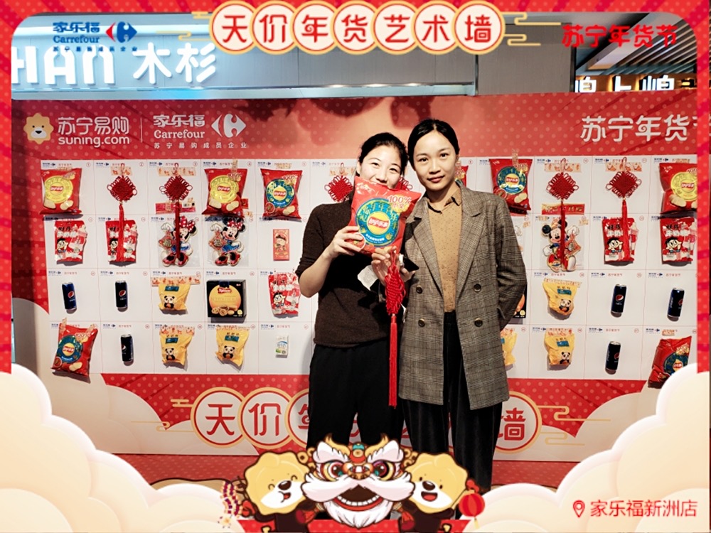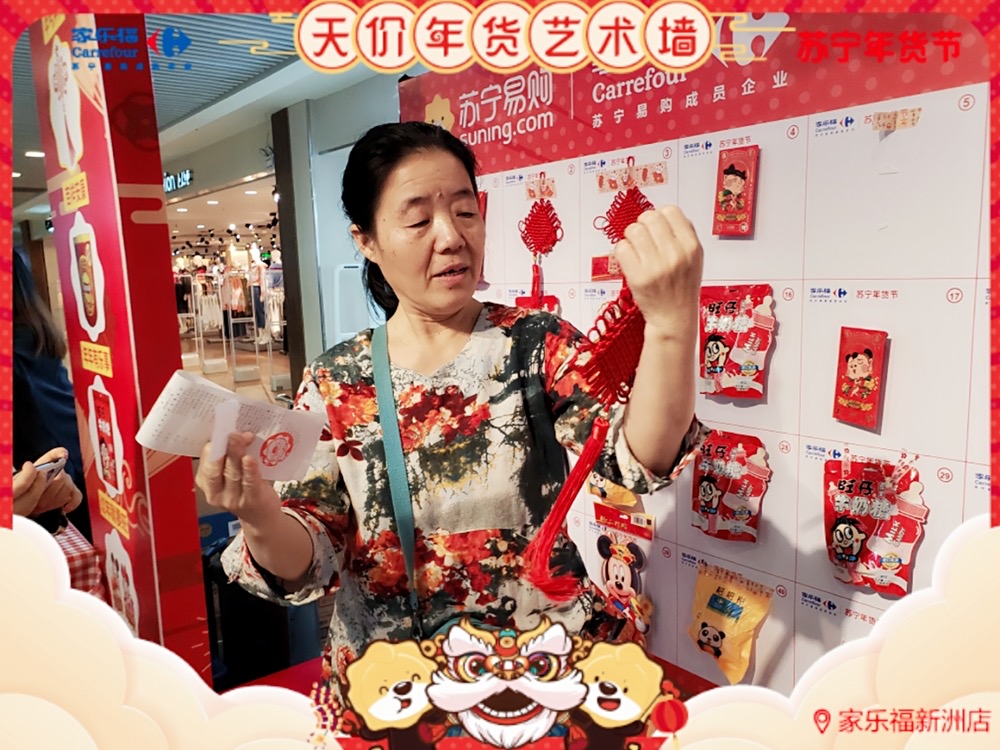 雖說活動創(chuàng)意來源于"天價香蕉",但家樂福華南區(qū) 送出 的福利可是如假包換。顧客們憑購物小票即可參與抽獎,德芙巧克力禮盒、丹麥藍(lán)罐曲奇、樂事新春全家桶、錦鯉年糕、對聯(lián)紅包福袋、旺仔牛奶糖、中國結(jié)……年貨好物一樣接一樣! 而且每樣產(chǎn)品都包含著新年的美好祝愿。