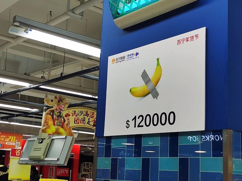 售價12萬美元的香蕉你見過嗎?反正 小編 今天在家樂福 華南區(qū)門店 見到了!這可是從美國巴塞爾藝術(shù)展 引進(jìn)的行為藝術(shù)。 獲此靈感,蘇寧版“天價年貨” 應(yīng)運而生!
