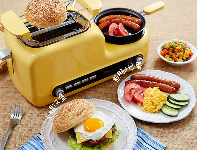在時間匆忙的早上,要想同時完成烤面包、煎培根、煎雞蛋等操作,卻還要用到多種電器才能完成,又費(fèi)時又顯忙亂。這時,一臺具備了烘、煎、烤、蒸、烙五種功能的小熊多士爐DSL-A02Z1就可輕松解決早餐問題。一邊烤土司,一邊用煎盤煎雞蛋和培根,整個過程只需5分鐘,便可完成一份美味三明治。吐司焦香,培根與雞蛋熱氣騰騰,搭配一兩片脆生菜,一口下去,便是滿滿的“小幸?!薄?/p>