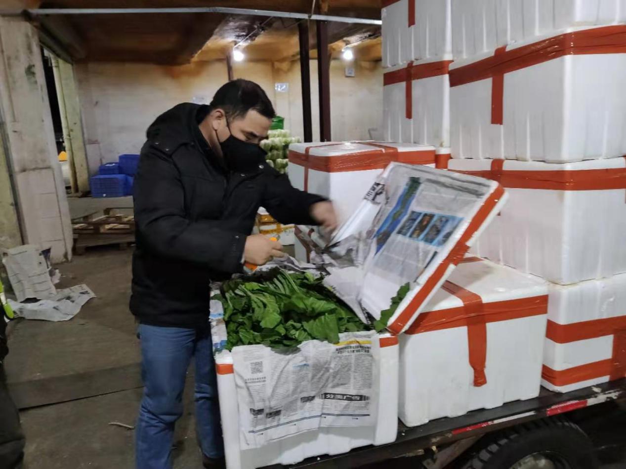 原本以為事情告一段落,年初三一早,家樂福廣東地區(qū)門店反饋市民搶購蔬菜的熱潮愈發(fā)高漲,使得平時要賣4至5天的貨物2個小時就銷售完畢。為保障市場正常供應(yīng),王凌光再次踏上了補貨之路。農(nóng)歷新年,又值疫情當中,大部分人都處在休假的狀態(tài),市場人員緊缺,事事都要親力親為。搶貨、驗貨、抽檢、分貨、上車、送貨到店……到了飯點吃盒泡面繼續(xù)奮斗。從年初二到初四的72個小時里,家樂福廣東地區(qū)的采購團隊基本是這么度過的。所有人都知道,這是超出采購本職工作以外的任務(wù),但所有人都沒有抱怨一個字,這是心中的力量在支持,這是使命使然。