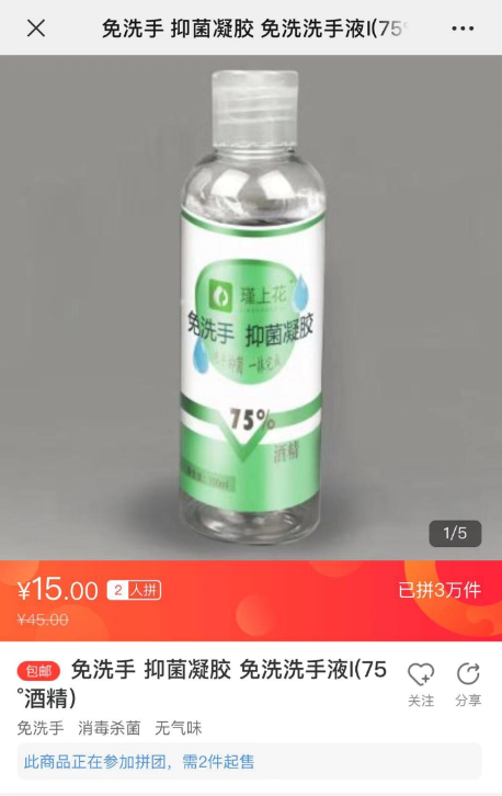 春節(jié)假期進入尾聲后,有少部分工廠陸續(xù)復(fù)工。其中有一家來著于蘇寧“拼工廠”的河北企業(yè)與蘇寧拼購?fù)献鳎_足馬力,全力生產(chǎn)酒精含量為75%的免洗手抑菌凝膠。據(jù)蘇寧拼購相關(guān)負責人介紹:“蘇寧將根據(jù)最近疫情消費數(shù)據(jù)指導(dǎo)該‘拼工廠’生產(chǎn),預(yù)估未來幾天銷量,讓工廠效率達到最大?!睋?jù)悉,該款“75%免洗手抑菌凝膠”商品僅2月2日上半日便拼出3萬單。河北“拼工廠”負責人表示,目前產(chǎn)能能達到日均20萬瓶。