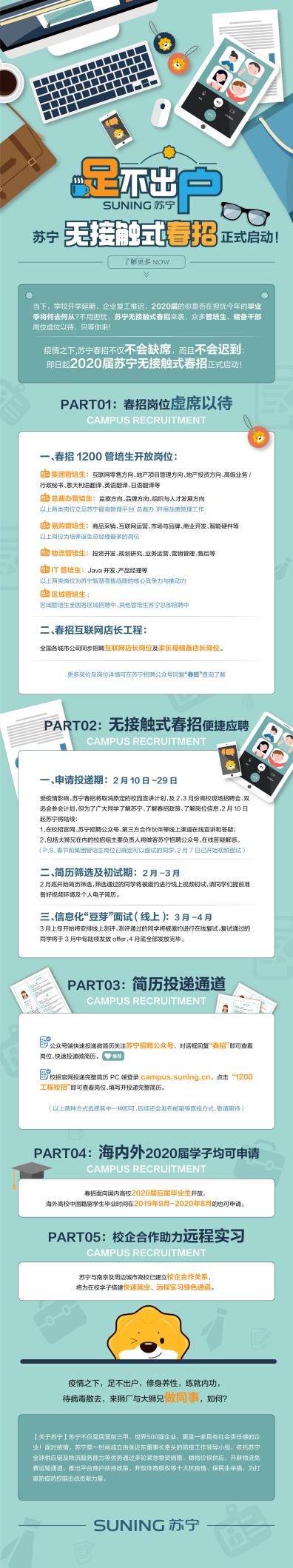 2月8日,蘇寧官方表示,疫情之下,將啟動(dòng)無接觸式春招,全力保障春招正常進(jìn)行。春節(jié)前確定可面試的畢業(yè)生,2月7日已陸續(xù)開始視頻面試。