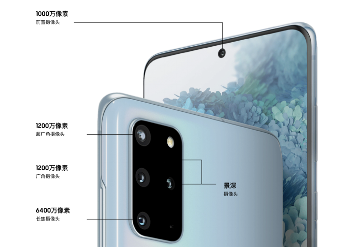 而 S20和 S20+的主攝像頭分辨率為6400萬像素,還有兩顆均為1200萬像素的廣角攝像頭和超廣角攝像頭,在體驗上略輸一籌,傳感器尺寸為1/1.76英寸,二者均前置了一顆1000萬像素的攝像頭。無論是哪一款產品都足以滿足用戶拍照的高需求。