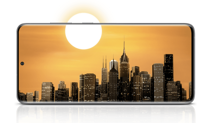 外觀方面,S20系列采用了Infinity-O全面屏設計。手機正面屏占比很高,上下邊框都做到極窄,視覺沖擊相當震撼。相對而言,這種中間挖孔的設計,在各種挖孔屏方案中顏值算是最高的。