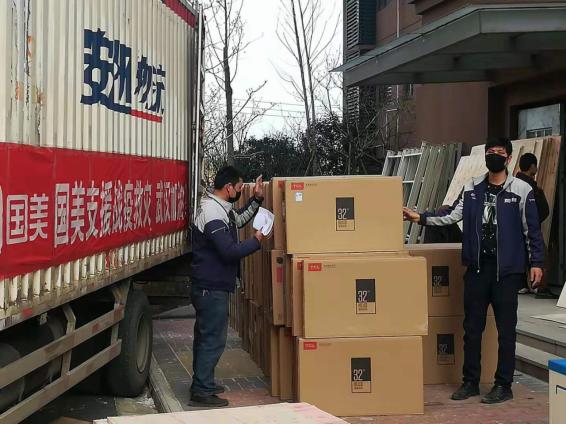 2月13日下午,國美還有援建武漢市九醫(yī)院東院A區(qū)方艙醫(yī)院的任務(wù),捐助200臺電視并完成配送。為了保證盡快完成如此大需求量的配貨,國美緊急調(diào)配了包括國美、TCL及海爾品牌電視,從武漢倉庫直接配送到方艙醫(yī)院,并按計劃于14日安裝調(diào)試。
