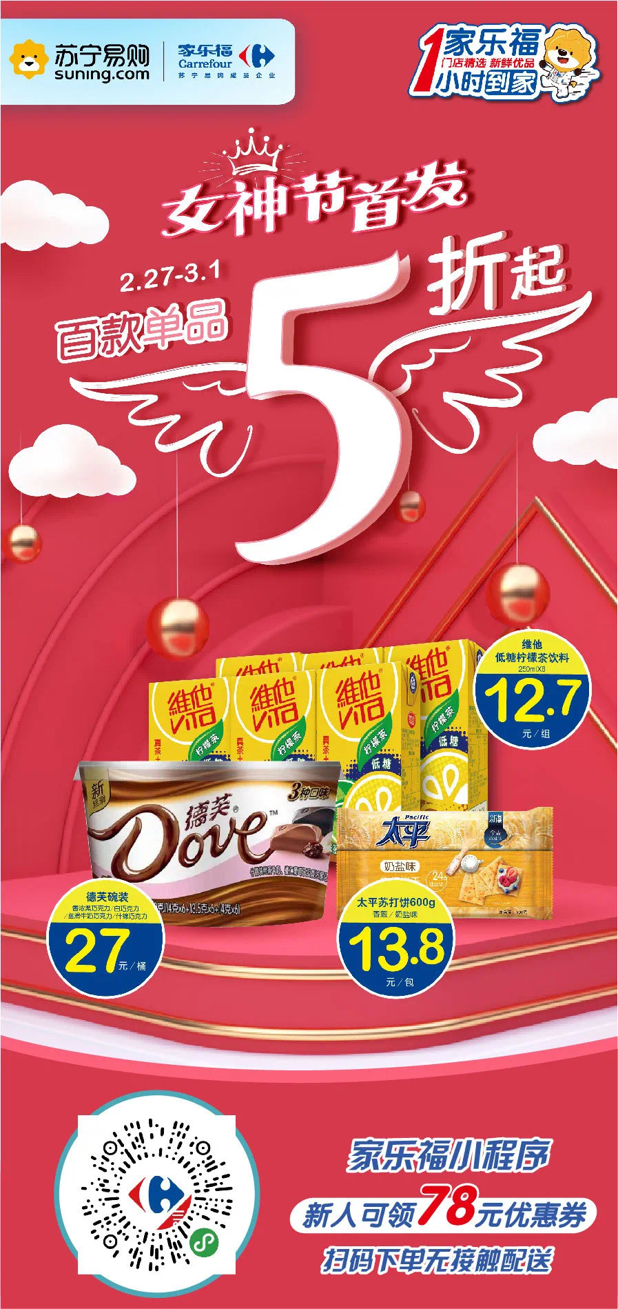 在這特殊的日子,與其等別人送禮,不如好好寵愛自己!2月27日至3月1日,僅限4天,家樂福小程序與您線上相約!您的外賣騎士已在路上,請(qǐng)及時(shí)簽收?。▍瞧G)