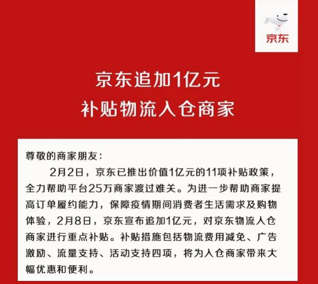 京東追加1億元補(bǔ)貼物流入倉(cāng)商家