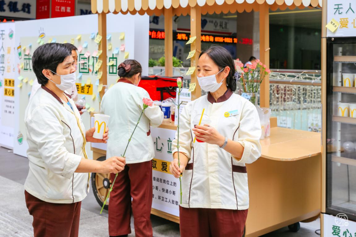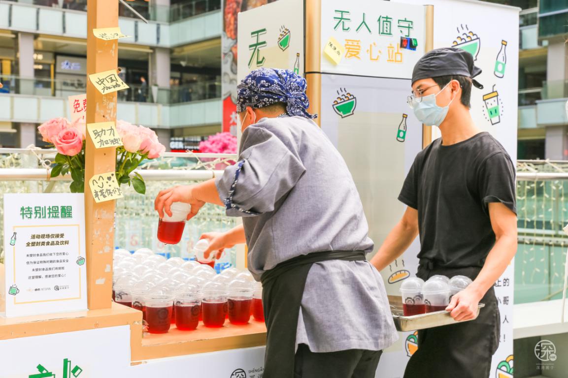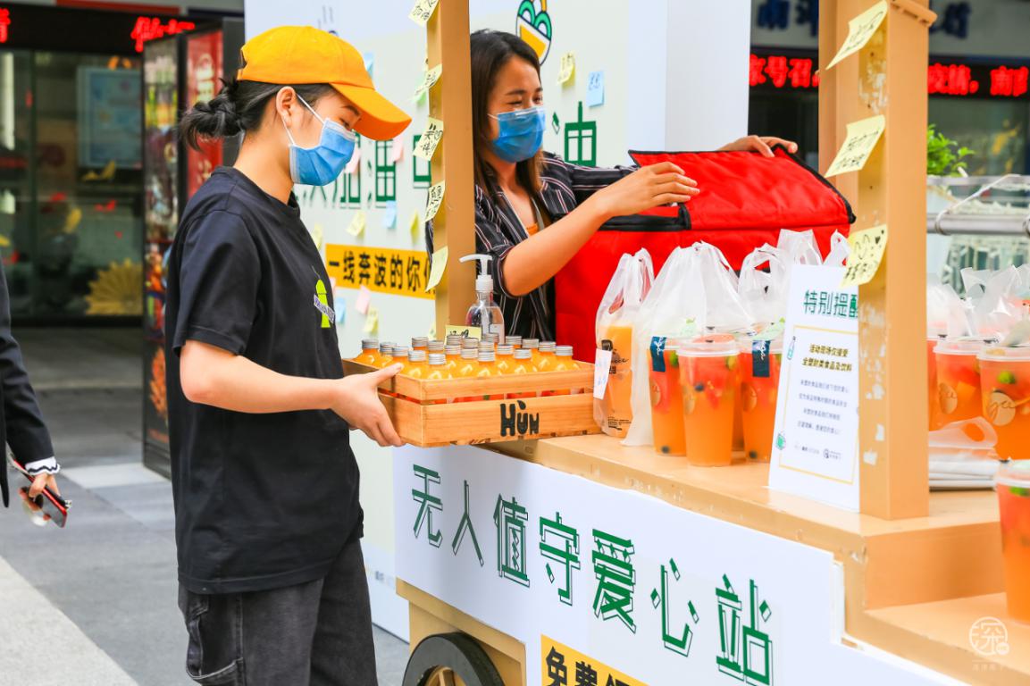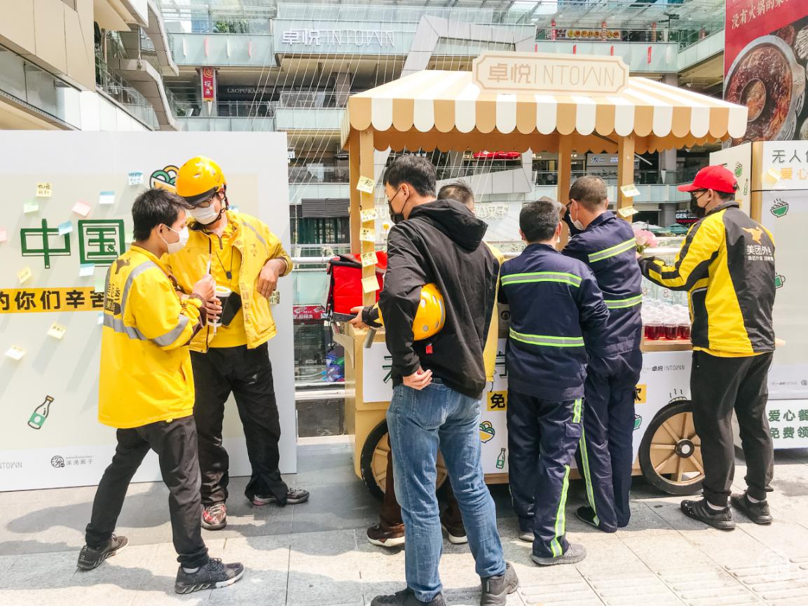 3月3日至3月8日卓悅INTOWN在街頭專(zhuān)設(shè)了一個(gè)”無(wú)人值守愛(ài)心站”,用愛(ài)心餐車(chē)上放滿(mǎn)了食物冷/熱飲,專(zhuān)門(mén)免費(fèi)贈(zèng)送給快遞、外賣(mài)小哥、環(huán)衛(wèi)工人、警察、城管等一線(xiàn)奔波的人員。