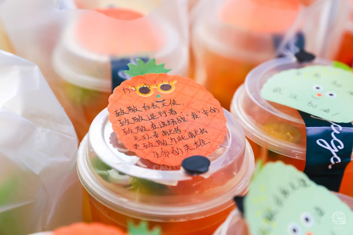 當(dāng)然除了熱心市民,來(lái)獻(xiàn)愛(ài)心的還有卓悅INTOWN購(gòu)物中心內(nèi)的商戶(hù):瑞幸咖啡、麥當(dāng)勞、太平洋咖啡、CoCo都可、湊湊、gaga鮮語(yǔ)、HUN混果汁、享甜、Bangs Burger燕遇、辣可可現(xiàn)炒黃牛肉、旬野菜在知道這次活動(dòng)后,紛紛主動(dòng)提供食物或飲品,給疫情期間始終奮斗在一線(xiàn)的服務(wù)人員們,他們值得我們好好愛(ài)著。