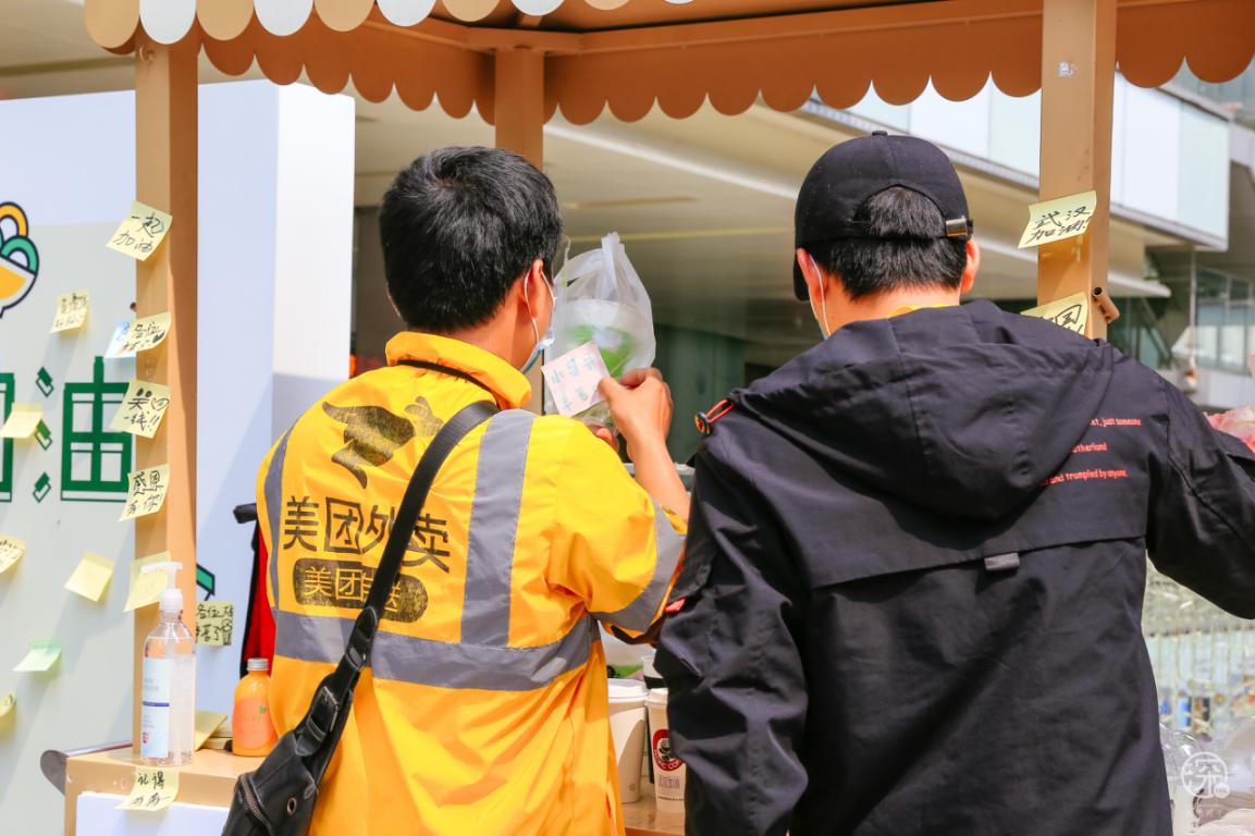 中午送餐高峰期結(jié)束后,周邊上班的愛(ài)心市民得知這個(gè)活動(dòng)后,也不斷來(lái)悄悄“補(bǔ)貨”。有的在便利店打包了烏冬面放在愛(ài)心餐車(chē)上;有的遠(yuǎn)程購(gòu)買(mǎi)了薯?xiàng)l、水果茶并留下了貼心備注;還有的市民陸續(xù)帶著“奇奇怪怪”的物品放在無(wú)人值守愛(ài)心站,在這里感受到了深圳這座城市的溫暖。