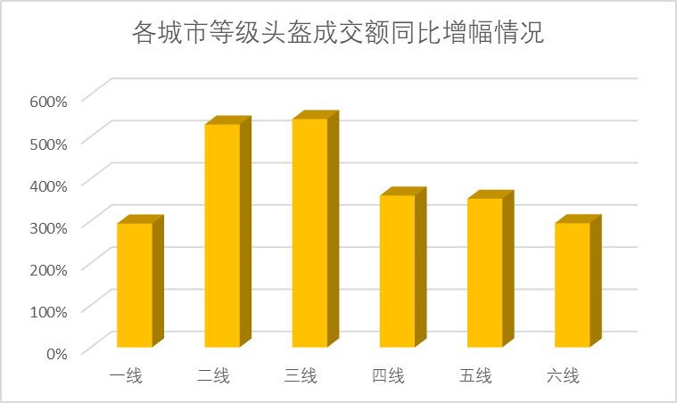 (各城市等級頭盔成交額同比增幅情況)