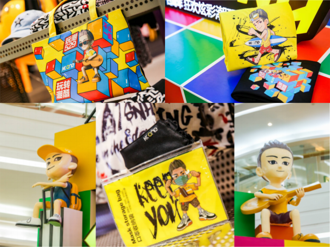 KK ONE原創(chuàng)IP ONE仔也進(jìn)行了全新亮相,從去年C位出道的練習(xí)生進(jìn)階為今天活力全開的潮流玩咖,ONE仔和所有追求個(gè)性和卓越的朋友一起成長(zhǎng),一起見證了2019年的街潮活動(dòng):拉闊籃球賽、不插電音樂賽、摩登實(shí)驗(yàn)室、鐘漢良見面會(huì)等活動(dòng)的精彩,一起體驗(yàn)創(chuàng)新放肆玩法和玩潮“魔”力。ONE仔和熱愛生活的潮咖們一樣,喜歡運(yùn)動(dòng),愛音樂,愛旅行。目前,ONE仔衍生的定制周邊皆陳列于本次炫彩“魔”方展中,并作為定制禮包贈(zèng)送給粉絲和顧客。據(jù)悉,未來KK ONE會(huì)挖掘更多的IP玩法,鮮活ONE仔形象,為潮咖們提供更多的玩潮互動(dòng)場(chǎng)。