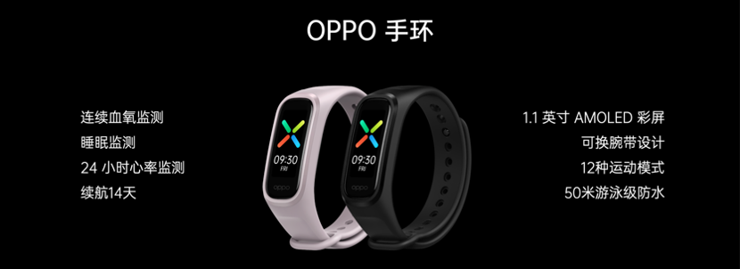 OPPO手環(huán)則主打運動健康,支持連續(xù)血氧檢測、12種運動模式;OPPO手環(huán)時尚版定價249元,標準版199元。