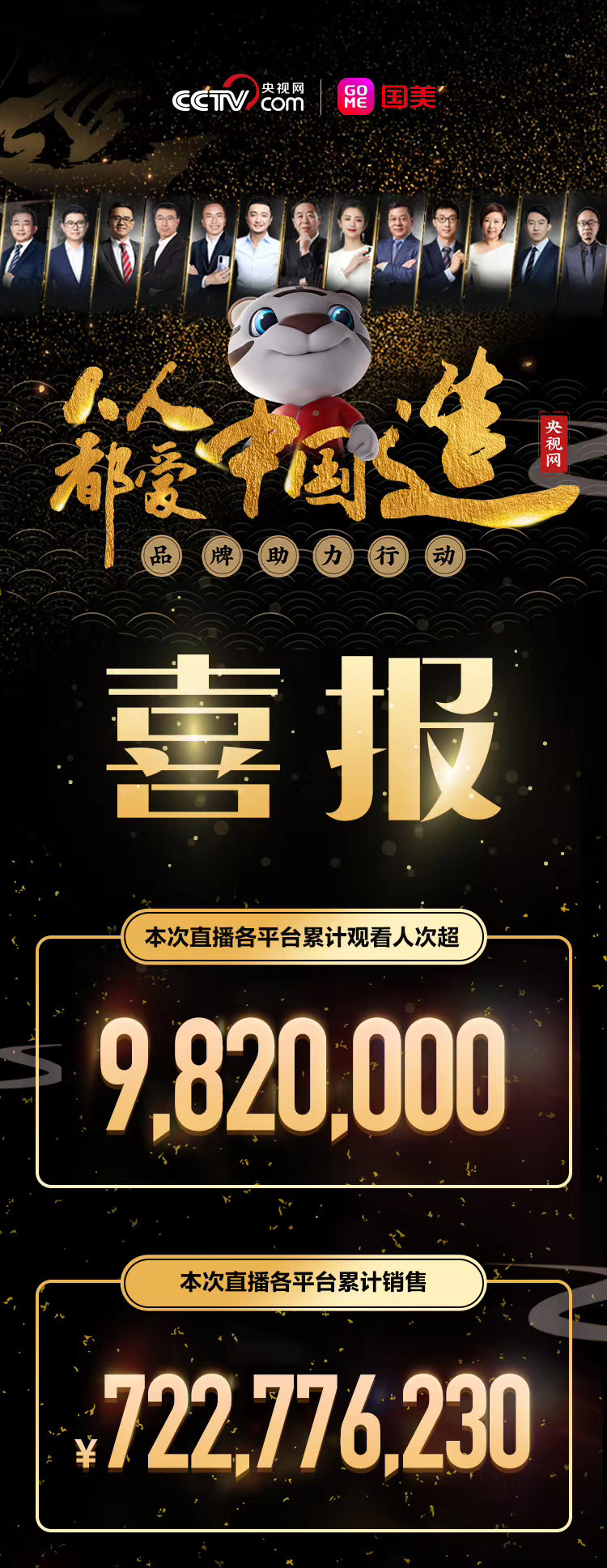 見(jiàn)圳客戶端·深圳新聞網(wǎng)2020年6月8日訊 繼6月6日“格來(lái)美”超級(jí)直播銷(xiāo)售額突破5.6億后,6月7日晚20時(shí),央視網(wǎng)聯(lián)合國(guó)美零售推出的#人人都愛(ài)中國(guó)造#為超級(jí)直播,3小時(shí)吸引近千萬(wàn)人觀看,總銷(xiāo)售額達(dá)7.228億元。