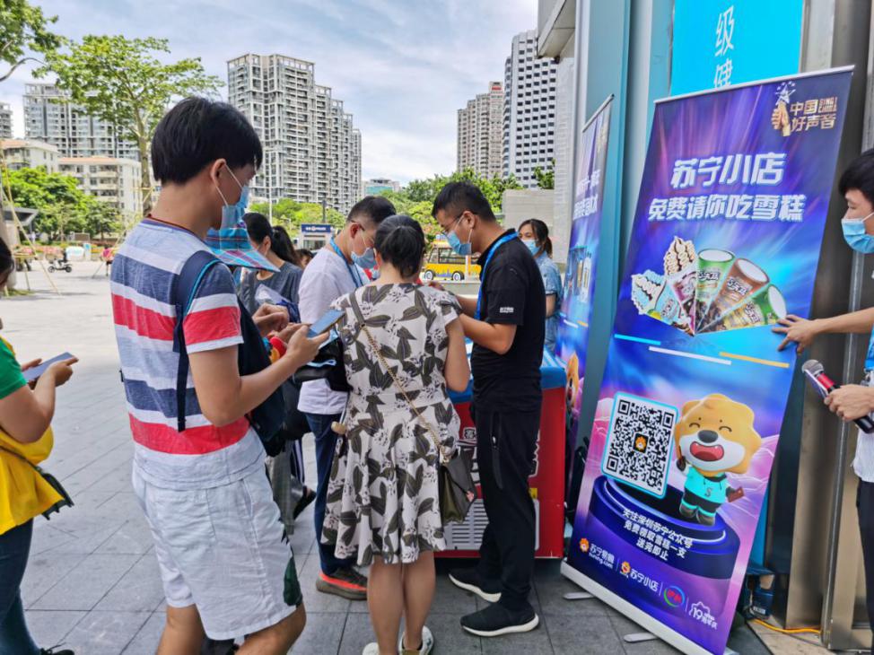 無獨(dú)有偶,群星廣場(chǎng)蘇寧易購門店外的活動(dòng)賽場(chǎng)亦同步在火熱舉行中,7月18日-7月19日,蘇寧聯(lián)合美的一同舉辦中國好聲音復(fù)賽,活動(dòng)現(xiàn)場(chǎng)熱鬧非凡,做好防疫檢查工作的同時(shí),全力維護(hù)現(xiàn)場(chǎng)治安秩序穩(wěn)定,活動(dòng)現(xiàn)場(chǎng)蘇寧小店展開夏日送清涼活動(dòng),免費(fèi)送冰水雪糕,用“清涼一夏”的愛心之舉,給市民帶去一份夏日關(guān)懷。同時(shí)現(xiàn)場(chǎng)參賽選手三十余位埋藏著夢(mèng)想的音樂人在舞臺(tái)上縱情燃燒,深情獻(xiàn)唱,將活動(dòng)推向了高潮。一同成就粵港蘇寧十九周年最炫的夜晚。