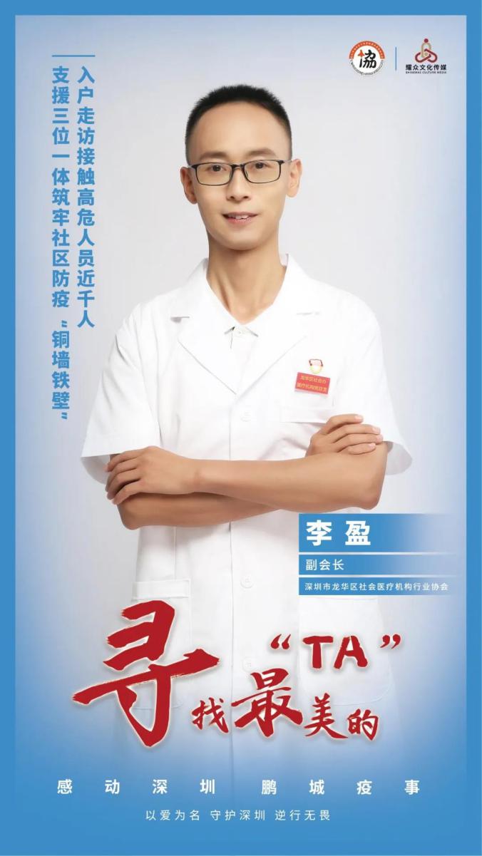 李盈是龍華區(qū)社會辦醫(yī)療機構(gòu)黨總支委員、社會醫(yī)療機構(gòu)行業(yè)協(xié)會副會長。自新冠疫情爆發(fā)后毅然簽下請戰(zhàn)書,2月初即投身于社區(qū)及社康“三位一體”疫情防控工作中,以社會基層治理網(wǎng)格為單位,助力全面細致排查。面對從高風險區(qū)來深人員,李盈作為醫(yī)務(wù)人員直面危險,每天皆需進行首次上門面訪、體溫監(jiān)測、健康詢問、健康評估,并對疑似人員立即轉(zhuǎn)運隔離等。