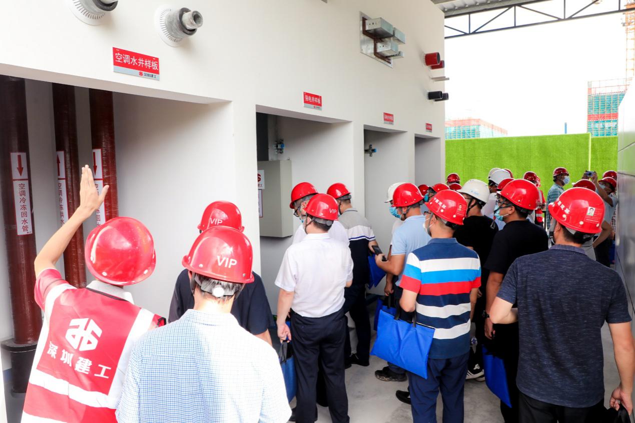 廣東省住房和城鄉(xiāng)建設廳黨組成員、副廳長蔡瀛,中國建筑業(yè)協會監(jiān)事長朱正舉、副秘書長李菲,深圳市建筑工務署署長喬恒利,深圳市住房和建設局黨組成員、二級巡視員肖民,深圳市光明區(qū)政府副區(qū)長周輝,廣東省建筑業(yè)協會副秘書長鄭順熾,深圳市住宅工程管理站站長唐建偉、深圳建筑業(yè)協會會長尹劍輝,深圳建工集團董事長魏俊等領導出席觀摩會。