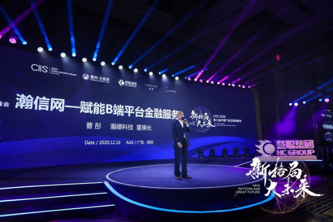瀚德科技董事長曹彤,發(fā)表題為《瀚信網(wǎng)-賦能B端平臺(tái)金融服務(wù)》主題演講。