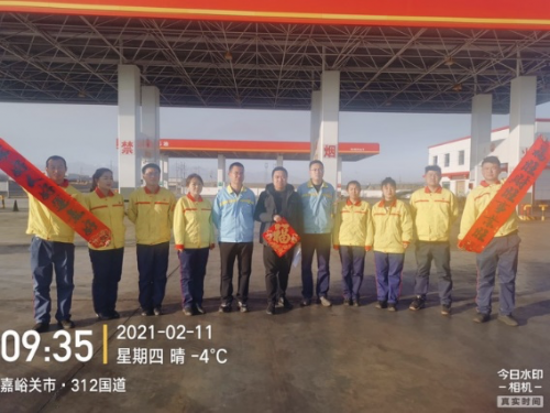 甘肅嘉峪關,加油員們收到能鏈送來的保溫杯和“?!弊?/span>