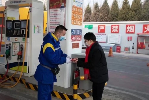 在內蒙古興安盟,團油員工于治浩沖上一線為大家送溫暖,油站值班員工想給他拍張照片,卻被他婉言謝絕了,原因是“要給更多的油站朋友送溫暖油”,一刻都不能耽誤。