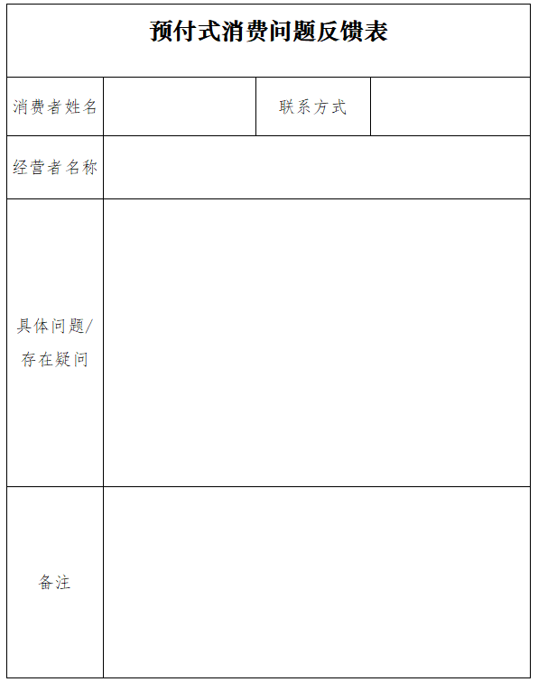 請(qǐng)?zhí)顚戭A(yù)付式消費(fèi)問(wèn)題反饋表(附件)并發(fā)送至郵箱:szcc315law@m(xù)ail.a(chǎn)mr.sz.gov.cn。