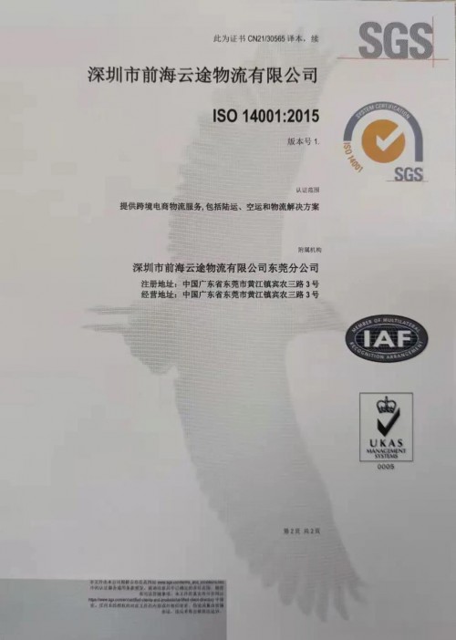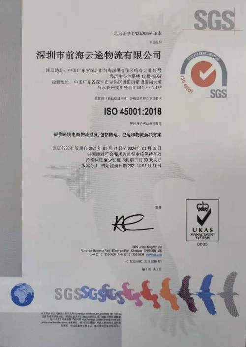 東方網(wǎng)2021年3月11日訊 繼2020年初獲得ISO9001質(zhì)量管理體系認(rèn)證后,近日云途物流順利通過專家組評審,再次獲得由國際公認(rèn)的檢驗、鑒定、測試和認(rèn)證機構(gòu)SGS頒發(fā)的ISO14001環(huán)境管理體系、ISO45001職業(yè)健康與安全管理體系認(rèn)證。