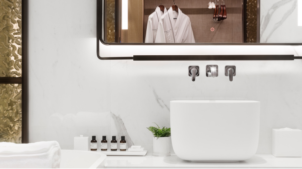 夜幕降臨,賓客可慵懶地置身浴缸之中,閉目享受由B&O音響帶來的音樂廳般沉浸式體驗(yàn)。或從飄臺(tái)取過剛剛煮好的香茗,讓茶香雅韻充盈唇齒。酒店備好的浴品套裝,將讓賓客從發(fā)絲到肌膚,皆浸潤(rùn)于LE LABO的香氛宇宙,奢寵體驗(yàn)無與倫比。