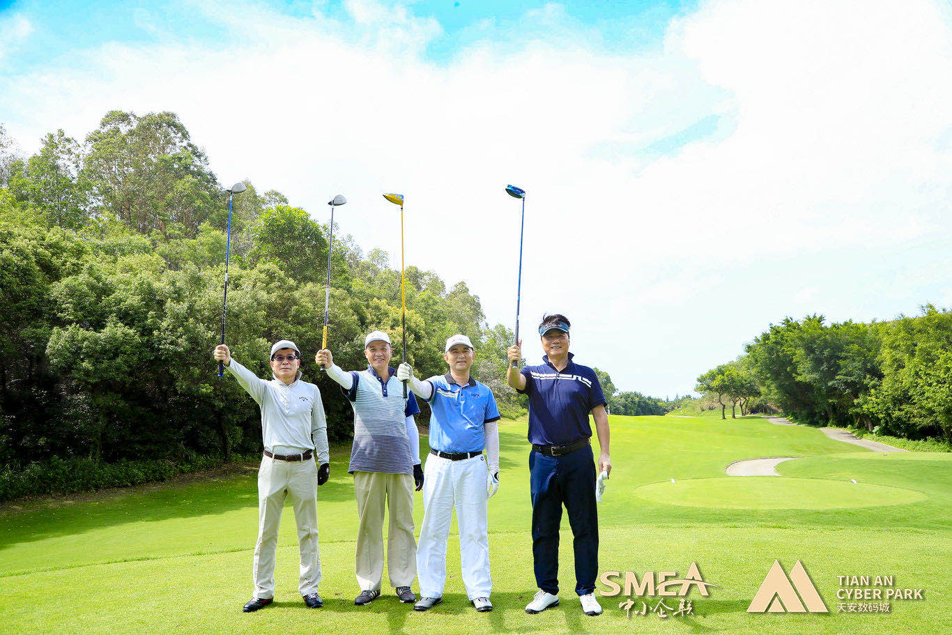 開(kāi)球儀式嘉賓:韓國(guó)駐廣州總領(lǐng)事洪性旭/天安數(shù)碼城集團(tuán)總裁杜燦生/惠州市韓商企業(yè)管理有限公司會(huì)長(zhǎng)崔圭龍/深圳市中小企業(yè)家聯(lián)誼會(huì)常務(wù)副會(huì)長(zhǎng)、深圳市銳明技術(shù)股份有限公司董事長(zhǎng)趙志堅(jiān)/中小企聯(lián)副會(huì)長(zhǎng)、陽(yáng)光高爾夫球隊(duì)第六屆主席、匯盈嘉實(shí)業(yè)董事長(zhǎng)林勁勛/中小企聯(lián)副會(huì)長(zhǎng)、陽(yáng)光高爾夫球隊(duì)第四屆主席、科網(wǎng)通電子董事長(zhǎng)苗棟/東莞企業(yè)公園企業(yè)家高爾夫球隊(duì)徐兆輝理事長(zhǎng)/惠州科創(chuàng)公園企業(yè)家高爾夫球隊(duì)宏道光理事長(zhǎng)/東莞市外商投資企業(yè)協(xié)會(huì)南城分會(huì)宋海震會(huì)長(zhǎng)/東莞企業(yè)公園企業(yè)家高爾夫球隊(duì)榮譽(yù)理事長(zhǎng)/東莞市慶瑞環(huán)??萍加邢薰咎K春定董事長(zhǎng)