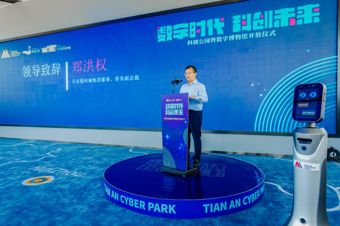 活動(dòng)開場(chǎng),天安數(shù)碼城集團(tuán)董事、常務(wù)副總裁鄭洪權(quán)致歡迎辭。鄭權(quán)表示,惠州天安數(shù)碼城科創(chuàng)公園與數(shù)字博物館的建設(shè),是順應(yīng)數(shù)字化、網(wǎng)絡(luò)化、智能化融合發(fā)展新趨勢(shì),推動(dòng)智慧城市發(fā)展和智慧產(chǎn)業(yè)生態(tài)體系建設(shè)效應(yīng)的呈現(xiàn)。惠州天安數(shù)碼城將緊抓惠州蝶變的關(guān)鍵時(shí)機(jī),圍繞“科學(xué)科技科普科幻科創(chuàng)科研科教”七科立園,深度融入省“一核一帶一區(qū)”區(qū)域發(fā)展格局,用集團(tuán)具有生命力和成長性的運(yùn)營體系,適配惠州城市發(fā)展模式,打造具有惠州產(chǎn)業(yè)基礎(chǔ)特色的產(chǎn)業(yè)園區(qū),以企業(yè)的發(fā)展,促進(jìn)產(chǎn)業(yè)的優(yōu)化和城市的進(jìn)化,攜手政府、企業(yè)、社區(qū)一同打造充滿生機(jī)和無限科技想象的科技園區(qū)。