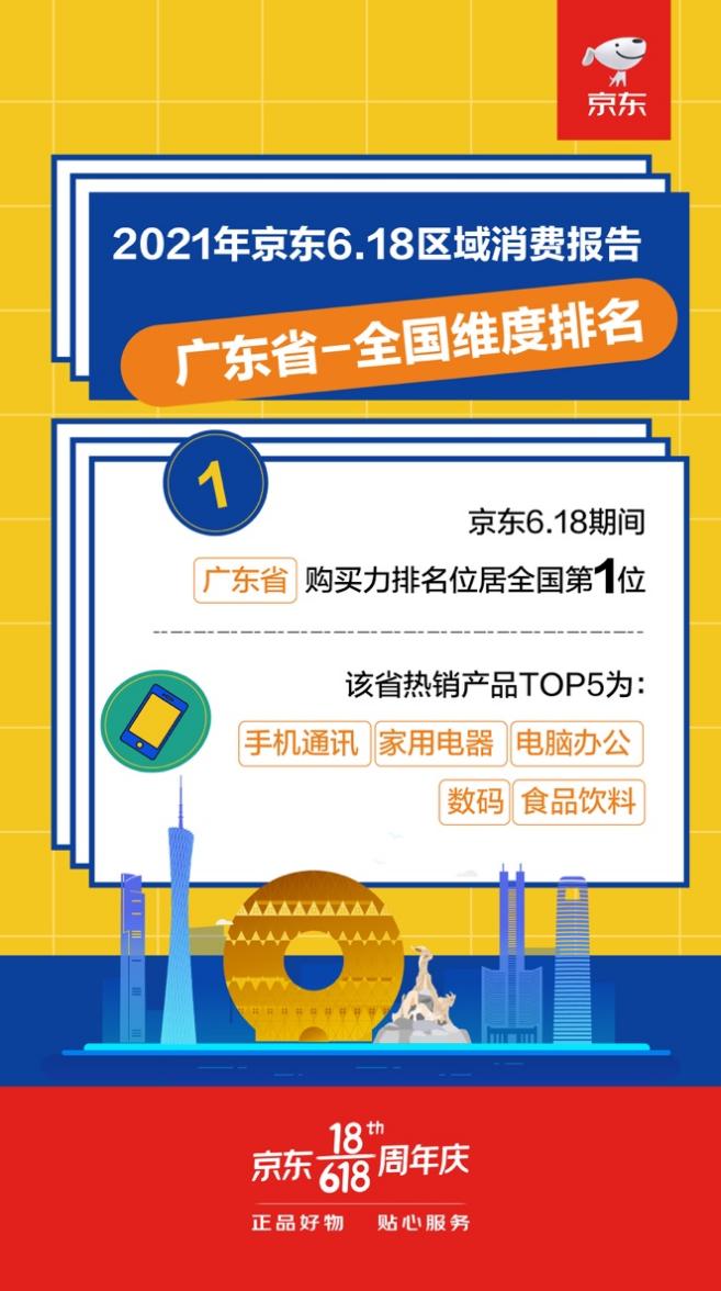 讀特客戶端·深圳新聞網(wǎng)2021年6月18日訊 (記者 田志強)2021“京東618”18周年慶,你有在京東買到自己心儀的商品嗎?這可是抄底式購物的最佳時機。不過,也不要只顧著看自己的,其實全國各個省份的消費情況也十分有趣。里面包含了大量的信息,這一次,我們就來揭秘,廣東省在本屆618中的表現(xiàn)。
