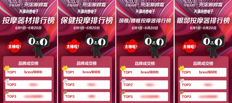 倍輕松的產(chǎn)品地位從創(chuàng)新、科技上很好地體現(xiàn)出來,而更重要的是在消費市場上,倍輕松仍占據(jù)了便攜式按摩器行業(yè)的重要份額。自倍輕松宣布肖戰(zhàn)成為全球代言人以來,這家21年高端按摩器品牌在線上銷售數(shù)據(jù)十分優(yōu)異,在目前中國購物網(wǎng)站巨頭的天貓、京東平臺榮獲多個品類排行榜第一。在618這個重要的消費日節(jié)點,倍輕松輕易獲得京東開門紅,僅4天就達到全網(wǎng)銷售額過億的成績。不僅在線上,倍輕松布局的線下門店多達150+家,各大機場、高鐵站、shopping mall均可以看到倍輕松的身影。據(jù)官方數(shù)據(jù),倍輕松在2021年上半年天貓平臺榮獲眼部按摩器單品品類排行榜第一如此以來,可以說倍輕松是便攜式按摩器線上平的領軍品牌。