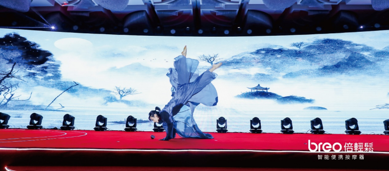 在晚會上,倍輕松邀請了風暴舞者羅昱文表演中國古典舞《問月》。“唯愿當歌對酒時,月光長照金樽里?!边@支舞蹈傳遞出中國東方美學和倍輕松的品牌哲學如出一轍的相似。舞者用古典神韻和舞姿將“與月相期邈云漢”的浪漫情懷表達的淋漓盡致。詩與酒,樂與舞,醉人心。