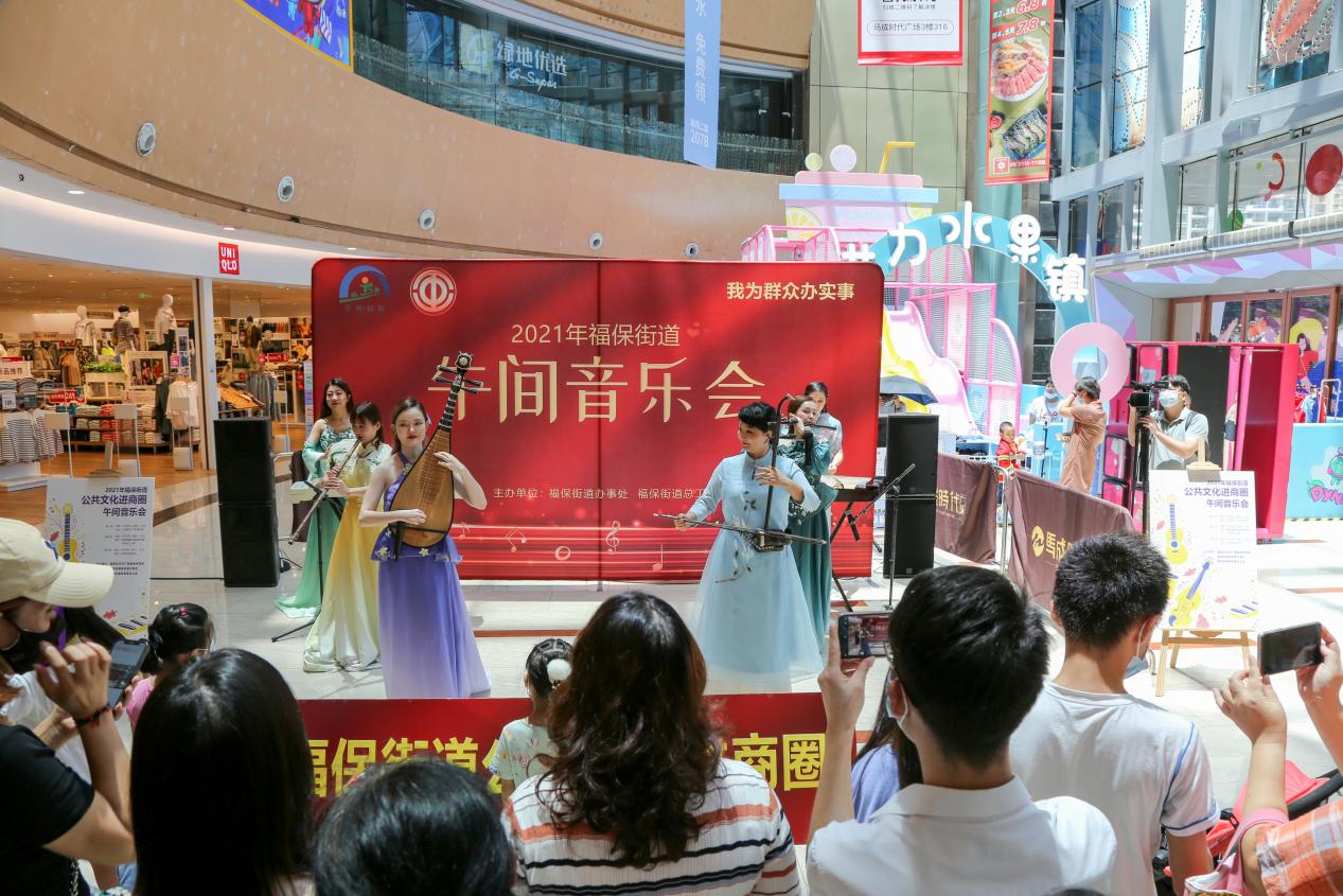 福保街道午間音樂(lè)會(huì)是福田區(qū)福保街道總工會(huì)為轄區(qū)企業(yè)員工量身定制的特色藝術(shù)惠民活動(dòng)?;顒?dòng)利用午休時(shí)間,將音樂(lè)會(huì)準(zhǔn)點(diǎn)送到轄區(qū)商場(chǎng)、企業(yè)大廈、創(chuàng)意園、工廠等,進(jìn)而豐富企業(yè)職工精神文化生活,讓廣大職工感受到來(lái)自政府的關(guān)懷、組織的溫暖,增加員工歸屬感,增強(qiáng)企業(yè)的凝聚力。