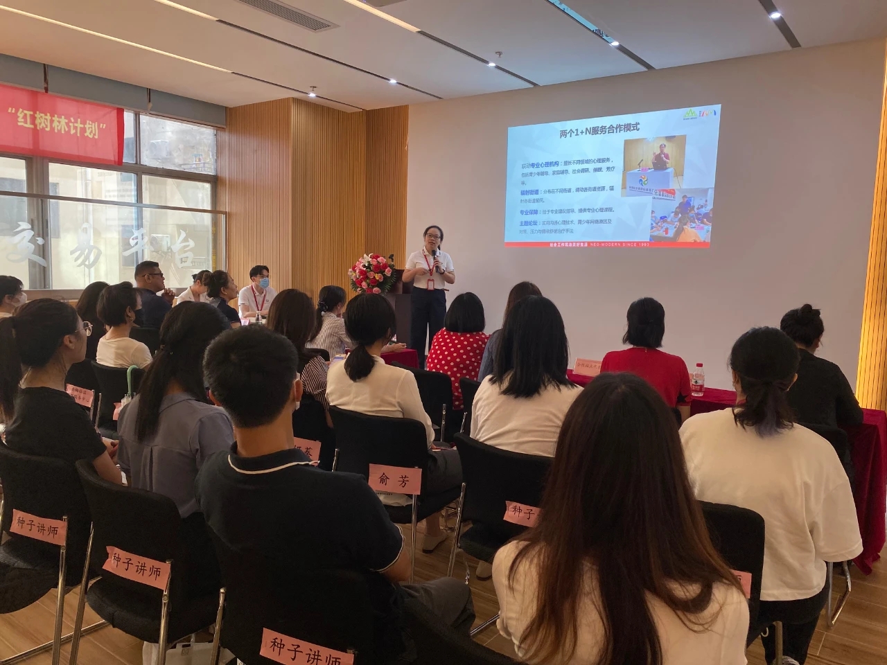 讀特客戶端·深圳新聞網(wǎng)2021 年8月27日訊(記者張俊達(dá)) 26日下午,由福田區(qū)社會建設(shè)專項(xiàng)資金資助,深圳市新現(xiàn)代社工服務(wù)中心舉辦的“匯聚專業(yè)力量,共筑心靈防線”——福田區(qū)社會心理服務(wù)體系建設(shè)“紅樹林計(jì)劃”項(xiàng)目成果發(fā)布會暨主題研討會在福田社會要素交易平臺路演廳舉行。本次活動邀請深圳市新現(xiàn)代社工服務(wù)中心專業(yè)副總干事韋曉冬、深圳市心理咨詢行業(yè)協(xié)會NLP專業(yè)委員會副主任黃國榮以及合作站點(diǎn)、合作機(jī)構(gòu)、種子講師、心理咨詢師和專家代表們30余人參加。
