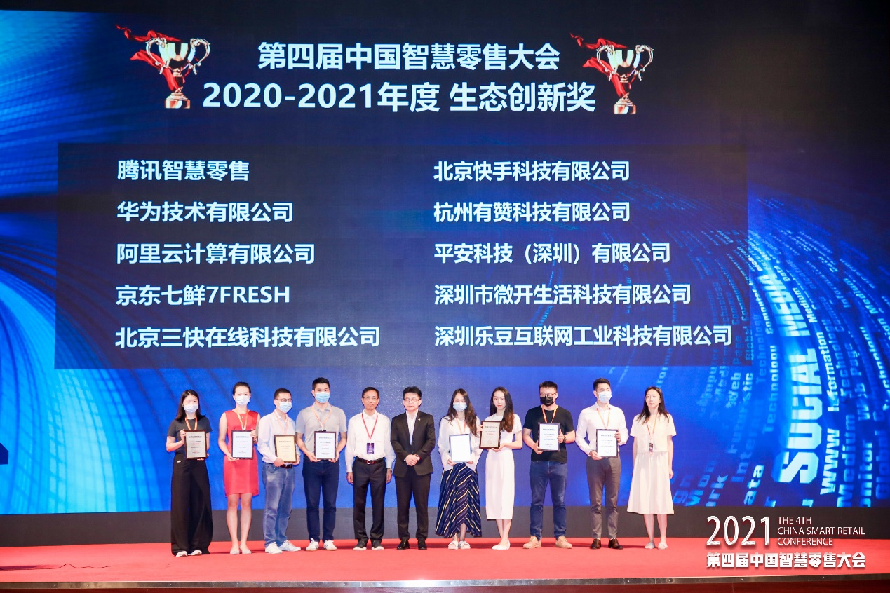 大會(huì)開幕式上頒發(fā)“2020-2021年度智慧零售系列大獎(jiǎng)”,大會(huì)組委會(huì)從行業(yè)新技術(shù)應(yīng)用創(chuàng)新;經(jīng)營(yíng)、商業(yè)、組織、管理、服務(wù)等模式創(chuàng)新;全渠道、全產(chǎn)業(yè)鏈、全生產(chǎn)要素賦能等生態(tài)創(chuàng)新;領(lǐng)軍者推動(dòng)智慧零售創(chuàng)新發(fā)展等四個(gè)維度,共頒發(fā):新技術(shù)應(yīng)用創(chuàng)新獎(jiǎng)、模式創(chuàng)新獎(jiǎng)、生態(tài)創(chuàng)新獎(jiǎng)、創(chuàng)新人物獎(jiǎng)四大獎(jiǎng)項(xiàng)。華潤(rùn)萬(wàn)家、靈智數(shù)科、有贊、樂信等企業(yè)獲此榮譽(yù),天虹股份譚曉華、百果園焦岳等人獲得創(chuàng)新人物獎(jiǎng)。
