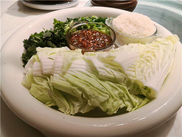 尤其扎眼的,正對(duì)大門的明廚亮灶上的幾塊牌匾,一下子就勾起人的食欲:老式熏豬手、手工燒老雞、烏蘇里江鰉魚、興凱湖大白魚、查干湖胖頭魚、火夫灶羊腿。這些都是地道的東北味?。?jù)介紹,老板湯長(zhǎng)明是黑龍江“龍菜”系傳承領(lǐng)軍人物,祖孫四代傳承東北菜廚藝,現(xiàn)在關(guān)東大院餐飲集團(tuán)董事長(zhǎng)。當(dāng)然,許多大家耳熟能詳?shù)拇蟊姴艘矐?yīng)有盡有,如:殺豬菜、小雞燉蘑菇、得莫利燉魚、大鵝燉寬粉、黑皮肘子、酸菜粉、地三鮮、東北鹵水點(diǎn)豆腐、金湯遼參、黃魚燒土豆、紅燒肉黃金勾......看得人口水直冒。加之,整個(gè)門店的布局也十分特別,一樓明廚亮灶之外,主要是大堂散座,周邊還有不少的書籍、酒架;二樓主要是包間,簡(jiǎn)潔明亮??梢哉f(shuō),在此可以感受到一股濃濃的關(guān)東風(fēng)情。