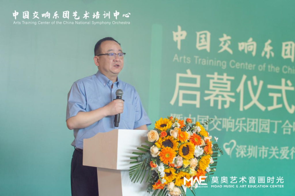 中國交響樂團副團長尹波、南山區(qū)文化廣電旅游體育局黨組成員、副局長任艷峰、中國交響樂團藝術培訓中心主任王曉柯、中國交響樂團藝術培訓中心深圳負責人韓仕英、華僑城歡樂時光項目負責人鄧皋峰、深圳市關愛行動基金會副秘書長魏平、莫奧藝術音畫時光校長王婷、莫奧藝術音畫時光行政總監(jiān)曹克等嘉賓出席了開幕儀式。