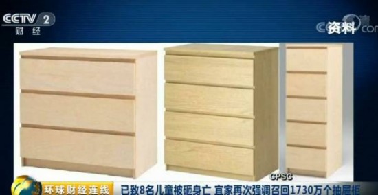 近日,宜家在北美地區(qū)召回1730萬件抽屜柜。在中國市場上,同樣款式的宜家產(chǎn)品仍在銷售,宜家并沒有召回的計(jì)劃。