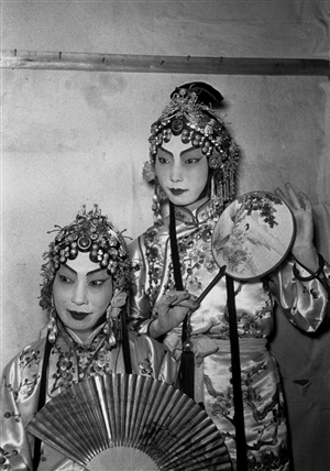 他10歲學(xué)藝,13歲正式登臺演出《玉堂春》、《四郎探母》等劇目,彼時的中國正值抗戰(zhàn)的危難時期,風(fēng)雨飄搖,他的父親為彰顯民族氣節(jié),正蓄須明志,暫別舞臺。我們在流傳下來的文獻照片中,只能看見一個面容清秀的少年,安靜地立于他名聲浩蕩的父親的身后,身體微微前傾——除此之外,我們沒法更多地捕捉到這對父子之間情感上的細節(jié),那黑白的畫面,靜穆而有意地拒絕向后人傳遞出更多的信息。