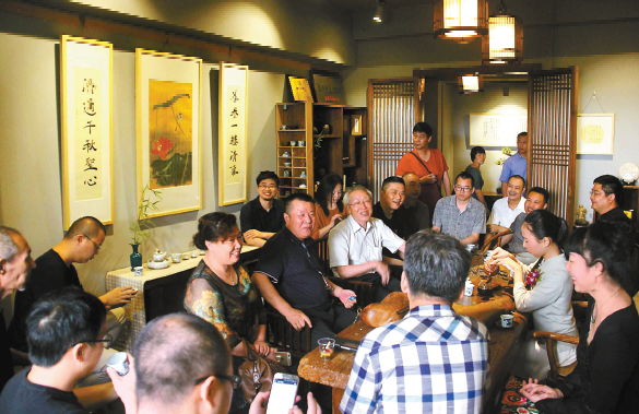 “現(xiàn)代人越來越注重生活美學,這次的展覽很貼近生活,我親眼見證這個書畫展的準備全過程,這些書畫家們既是內(nèi)容撰寫者,又是書畫創(chuàng)作者,還是設計師和裝潢師。他們親自裁剪懸掛,布置調整,茶和書畫文化結合起來,剛好與善濟堂茶禪會館作為大眾服務的生活美學體驗館的理念不謀而合?!鄙茲貌瓒U會館女主人成潔曼告訴記者。