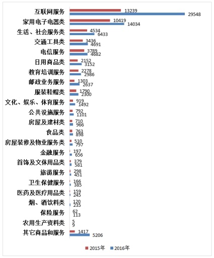 互聯(lián)網服務類投訴2015年同比增長了24.45%,2016年同比增長了123.19%,繼續(xù)保持投訴總量第一位,反映的問題主要有: