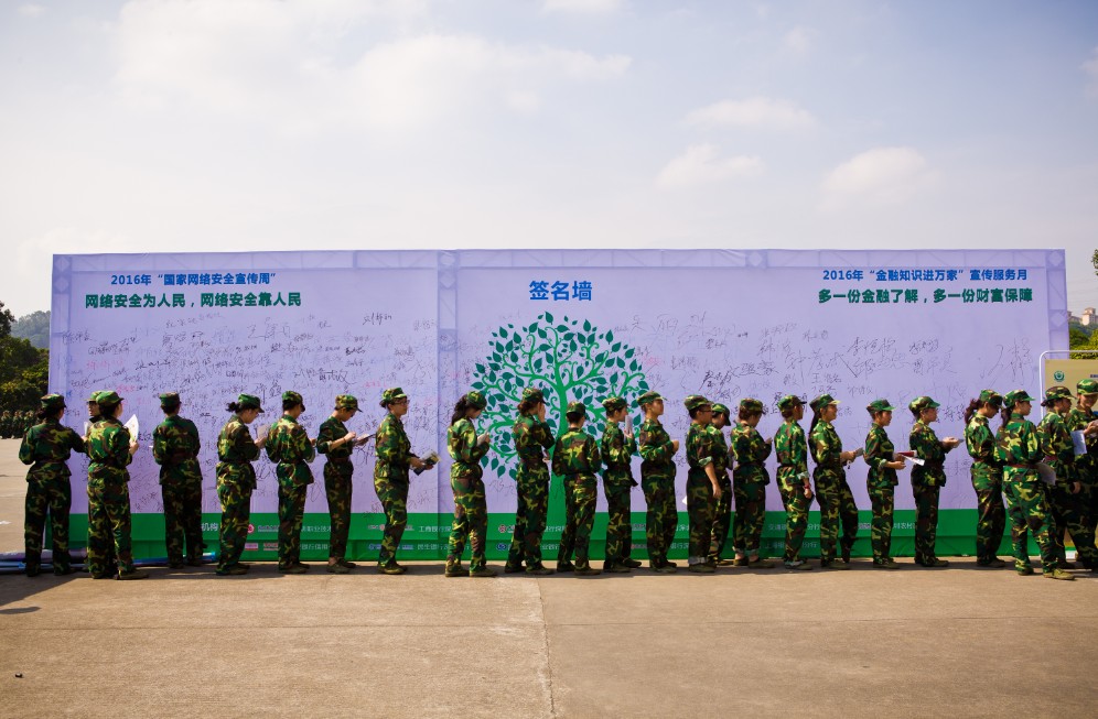 近4000名深圳職業(yè)技術(shù)學(xué)院的大一新生積極參與,在各個(gè)展位前領(lǐng)取宣傳手冊(cè)、折頁(yè),并在簽名版上爭(zhēng)相簽名留念。但這場(chǎng)活動(dòng)并不是在深圳職業(yè)技術(shù)學(xué)院校園,而是在深圳國(guó)防教育基地。