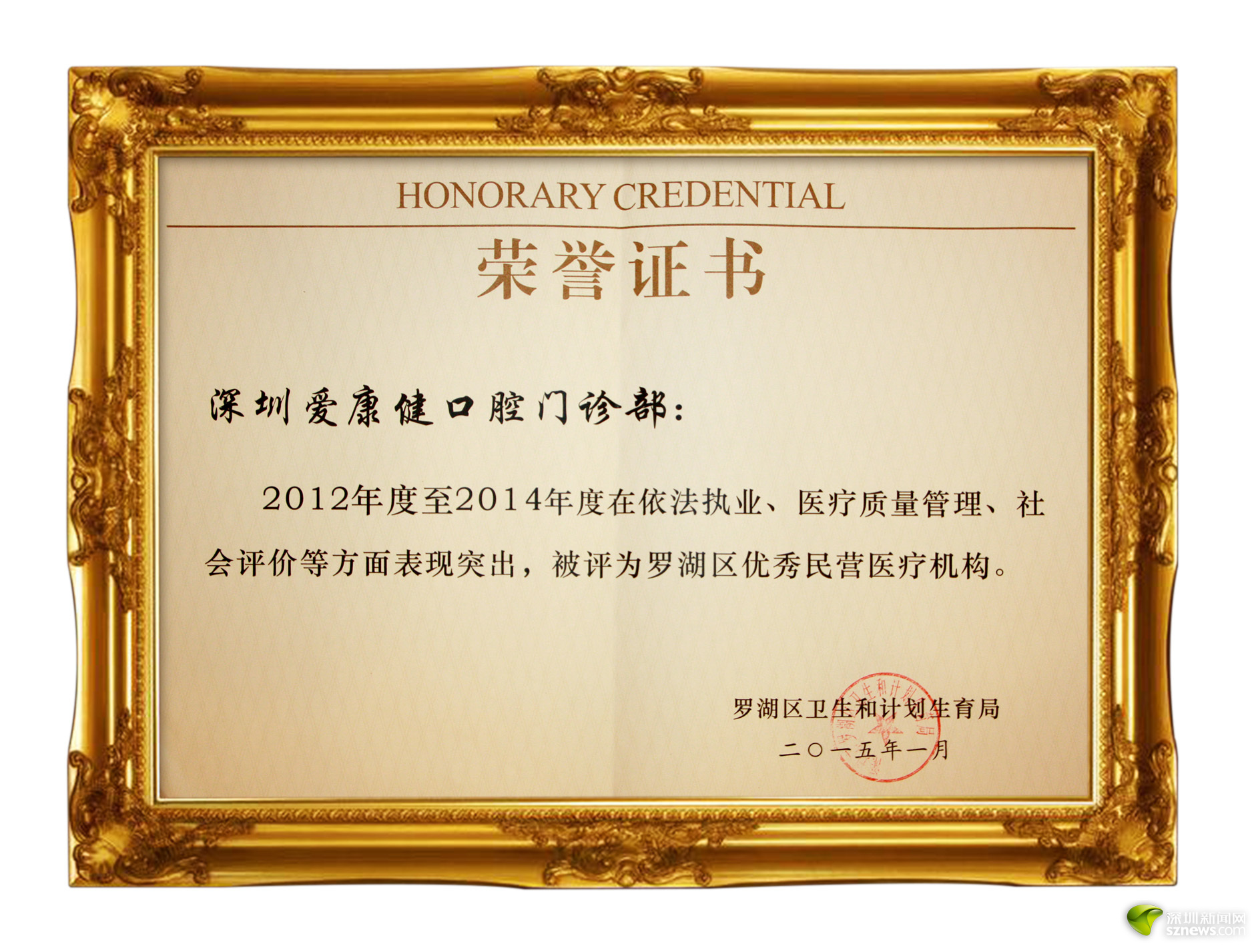 在羅湖區(qū)衛(wèi)生和人口計劃生育局民營醫(yī)療機構醫(yī)療服務整體管理與醫(yī)療質量控制評估中,獲評“A級單位”。