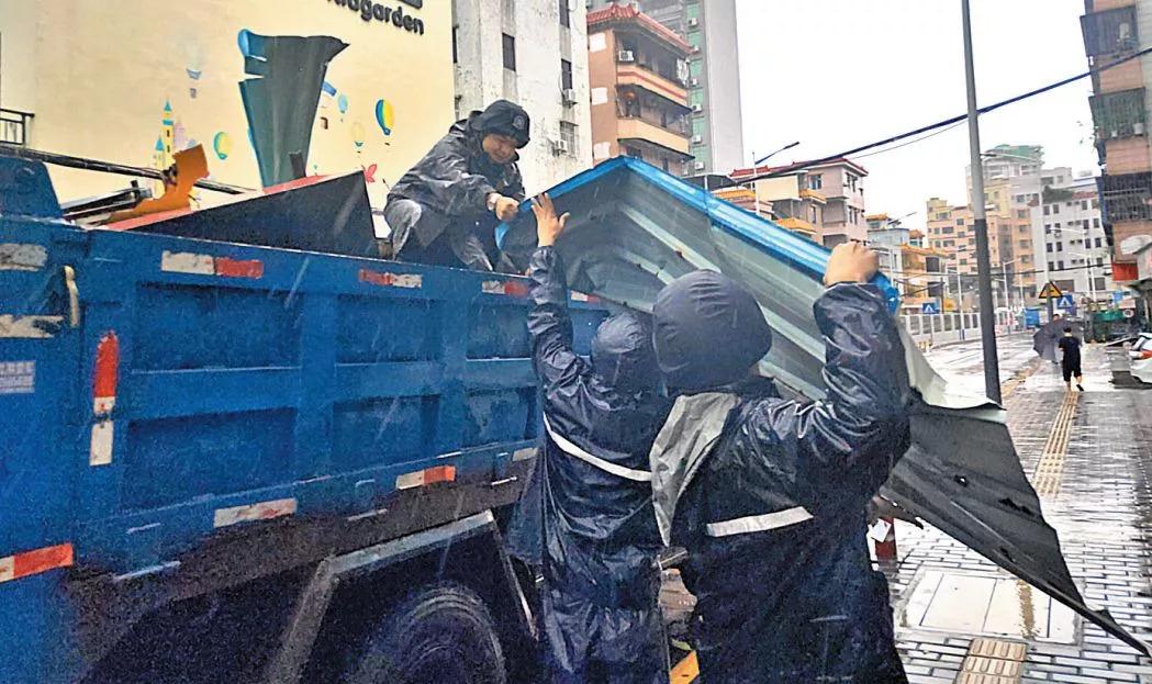 觀瀾街道執(zhí)法隊(duì)員在合力清理路障