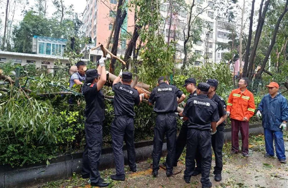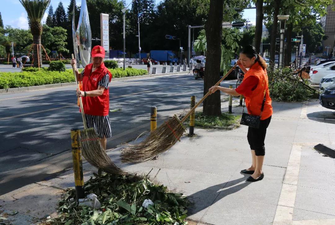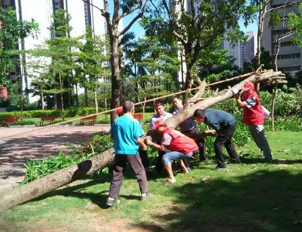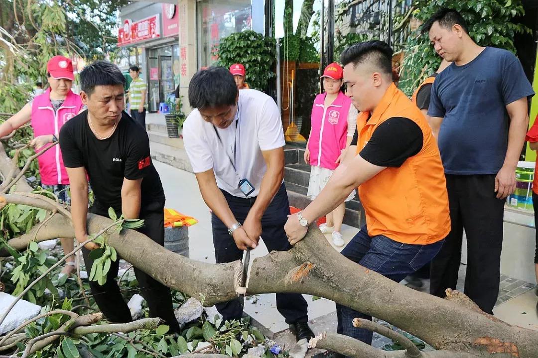 龍華街道工作人員與義工協(xié)力處理倒伏樹(shù)木