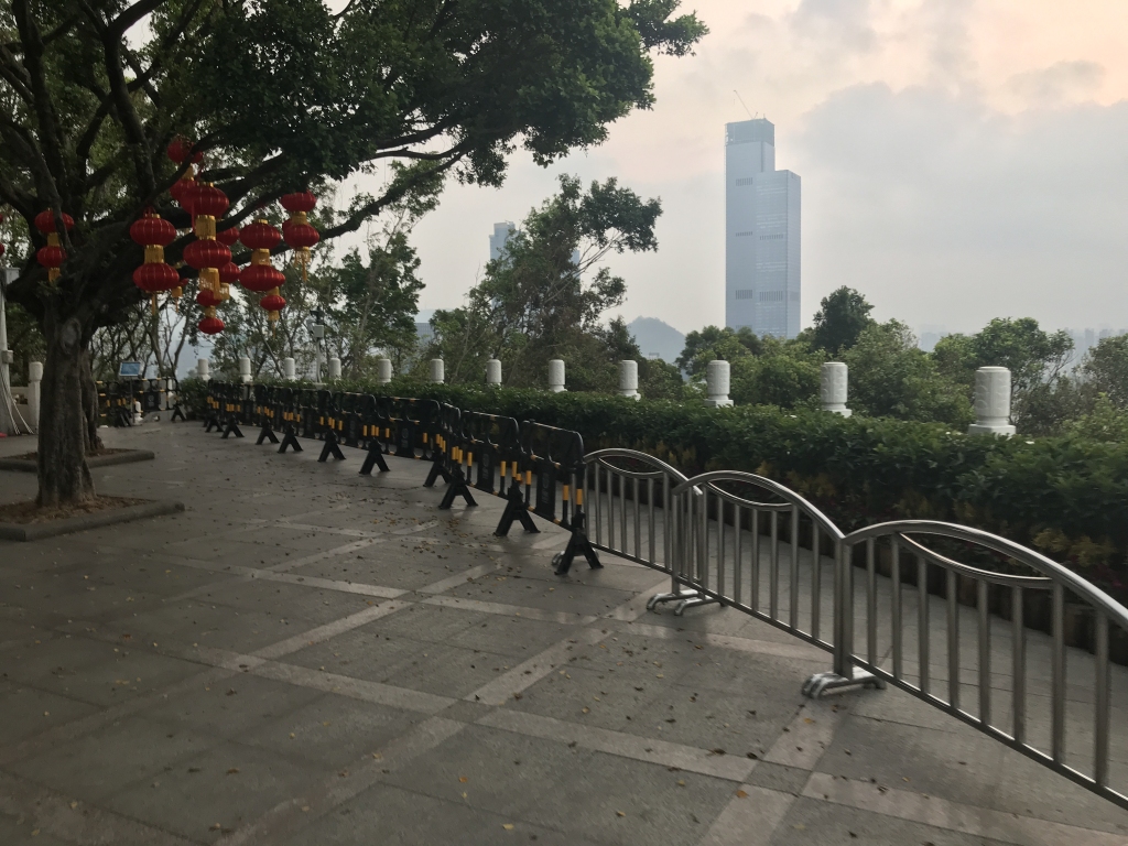 10月9日,有市民發(fā)帖稱,蓮花山公園山頂廣場上以及廣場四周的漢白玉欄桿前,都被人為設(shè)置了一圈“鐵馬”。由于蓮花山山頂是深圳著名的旅游景點(diǎn),該市民認(rèn)為設(shè)置圍欄會(huì)使很多游客無法近距離合影。與此同時(shí),市民還反映如要靠近廣場四周的漢白玉欄桿前拍照,就會(huì)被公園保安阻攔。保安稱要靠近欄桿拍照,則必須到管理處開證明,其質(zhì)疑該項(xiàng)規(guī)定不合理。