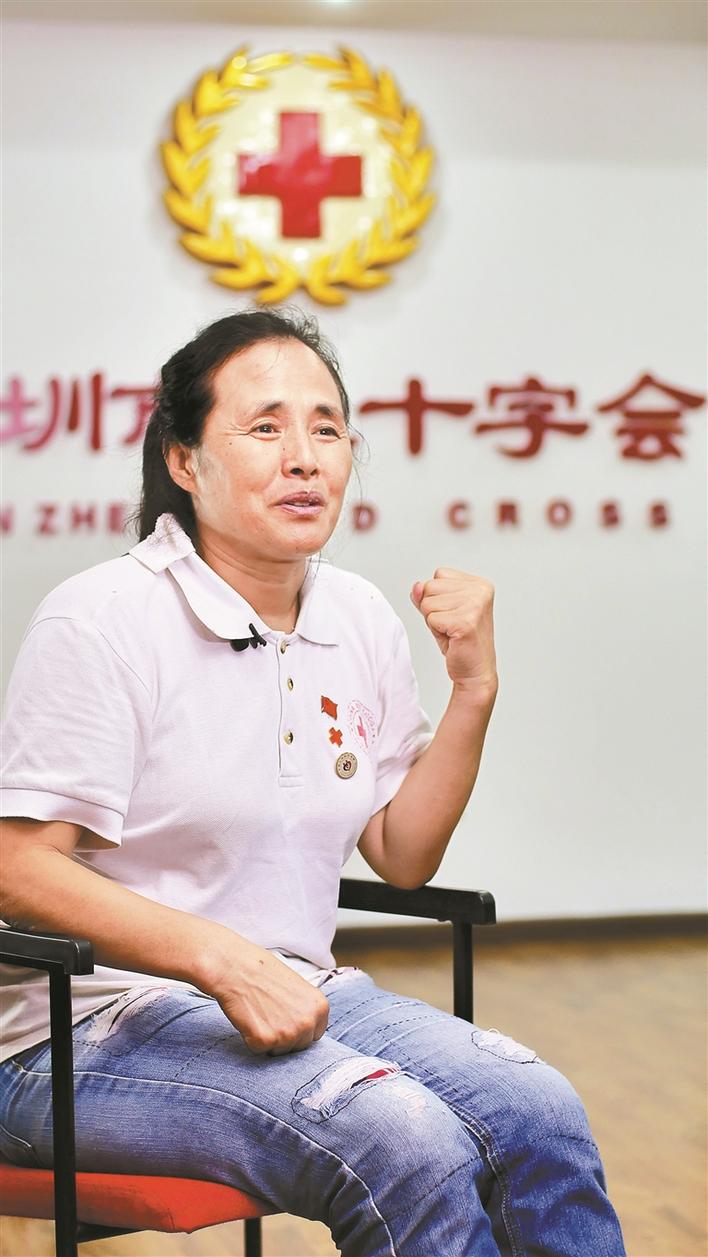 1997年,我從濟(jì)南市商河縣的農(nóng)村來(lái)到深圳,幫妹妹照看孩子。一次偶然的機(jī)會(huì),我看到路邊一輛無(wú)償獻(xiàn)血車,車上寫著缺A、B、O型血,這讓我想起了小時(shí)候看過(guò)的小人書,白求恩大夫獻(xiàn)出300毫升鮮血挽救了八路軍傷員的生命,心想現(xiàn)在自己也有機(jī)會(huì)通過(guò)獻(xiàn)血去救助危重的病人,真的太好了。漸漸地,我成了深圳市紅十字會(huì)的“常客”,也成了深圳市紅十字會(huì)的志愿者。至今,我志愿服務(wù)時(shí)間近6萬(wàn)小時(shí),無(wú)償獻(xiàn)血316次。